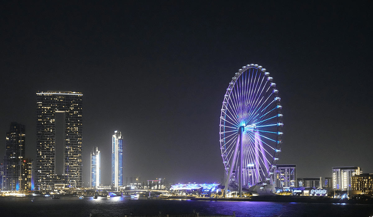 The big wheel is 60 meters tall and has a huge 50-meter screen made of LED lights. It shows lots of cool stuff like live scenes, shows, and views of Dubai. You can have a lot of fun on the wheel as it goes up high above the park. From there, you can see all the fun things happening and the bright lights of Dubai.